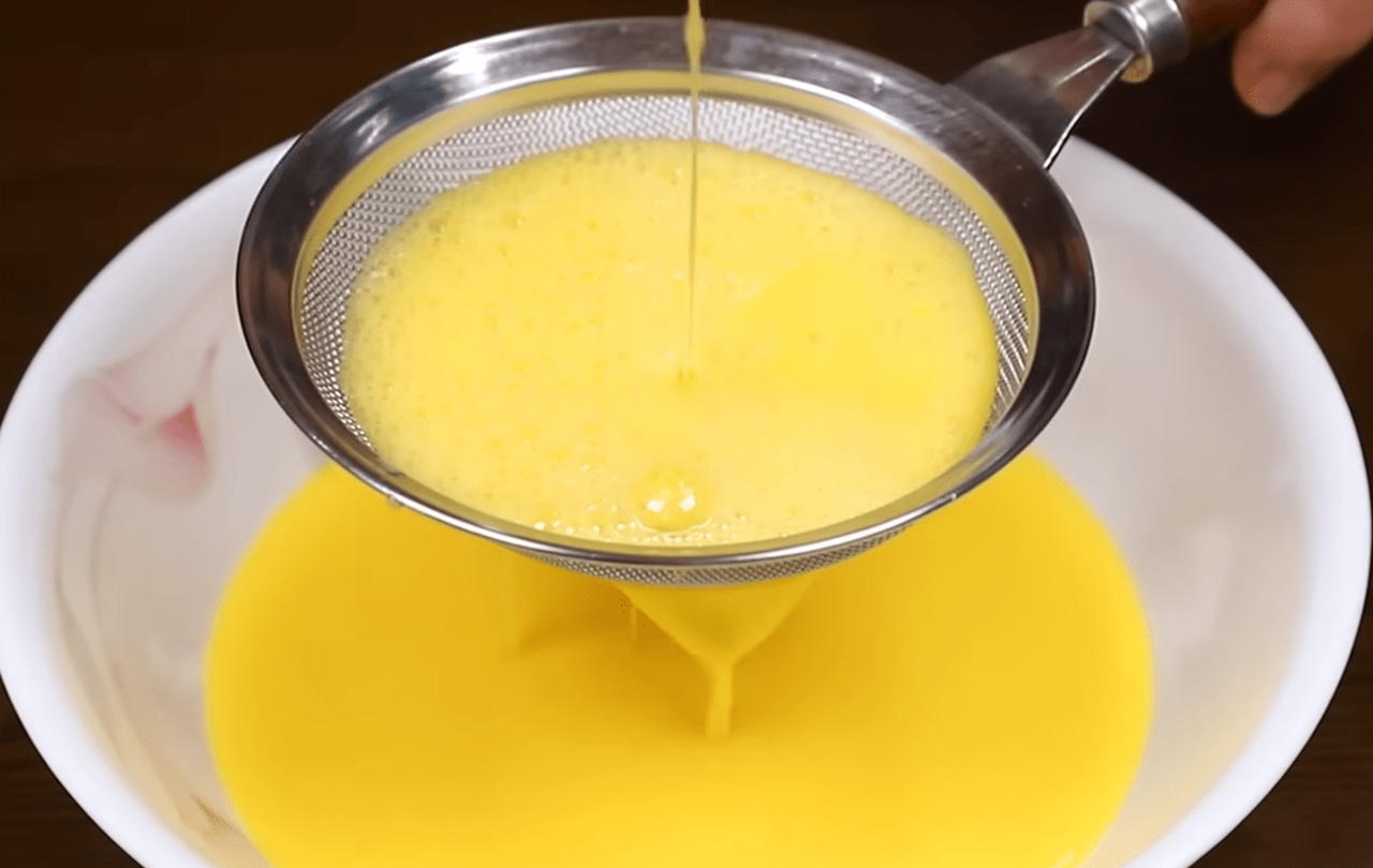 ▲만약 더욱 매끈한 계란찜을 원한다면 계란물을 체에 한번 거르면 기포가 줄어들어 마치 전문식당에서 나오는 듯한 부드러운 결과물을 얻을 수 있다.