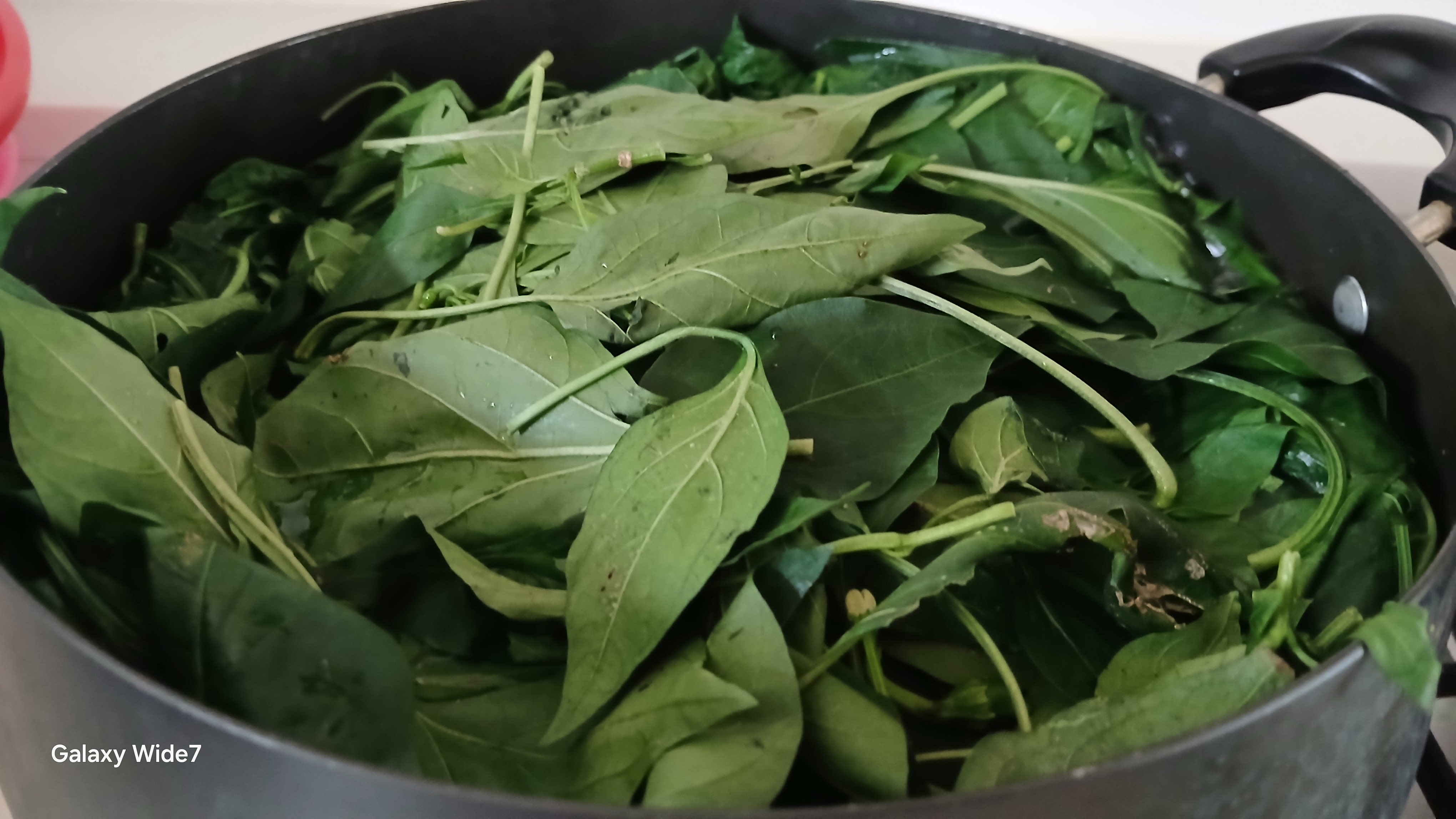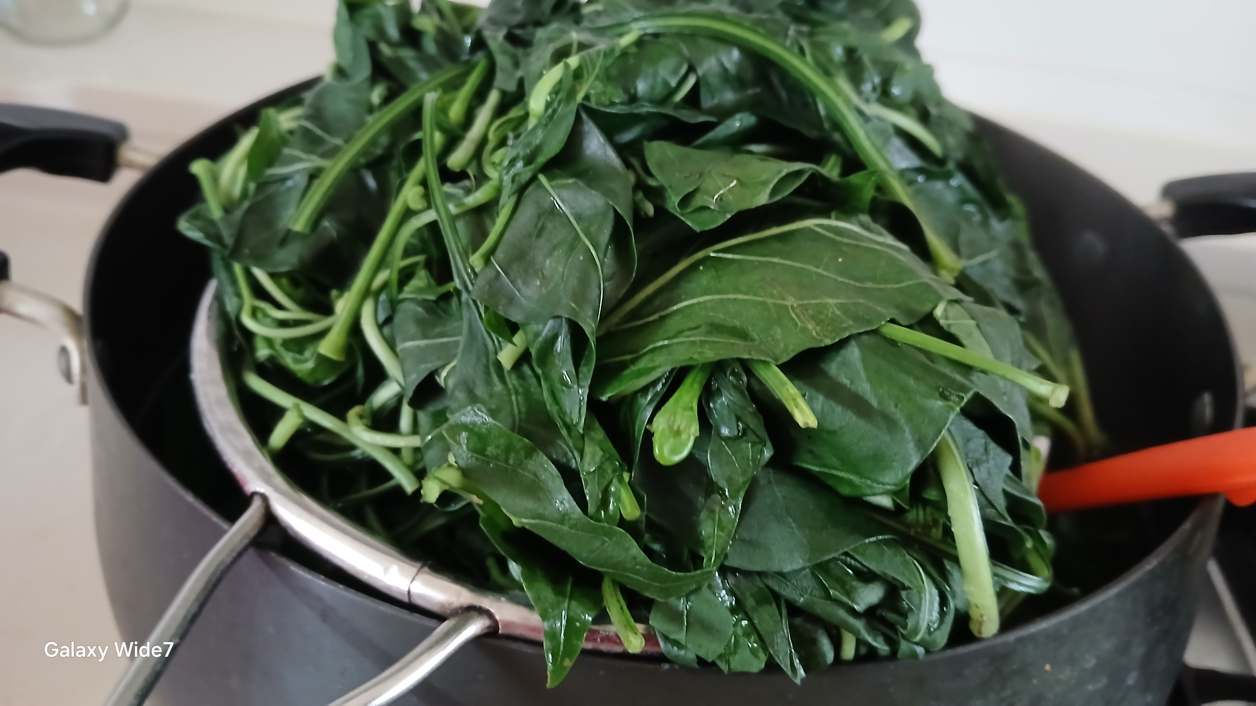 ▲물이 팔팔 끓으면 고추잎을 넣어 바로 뒤 집어 주시고