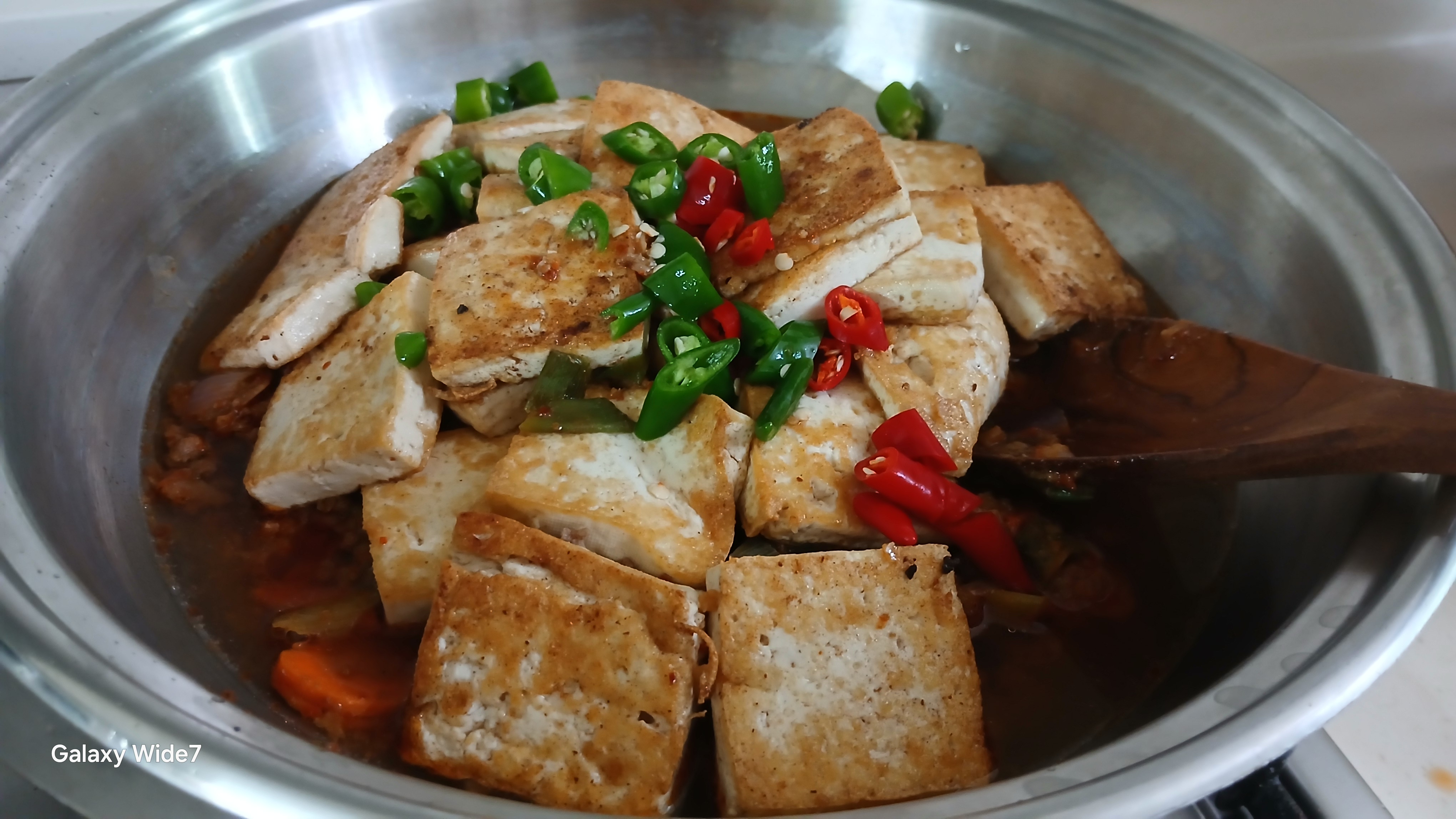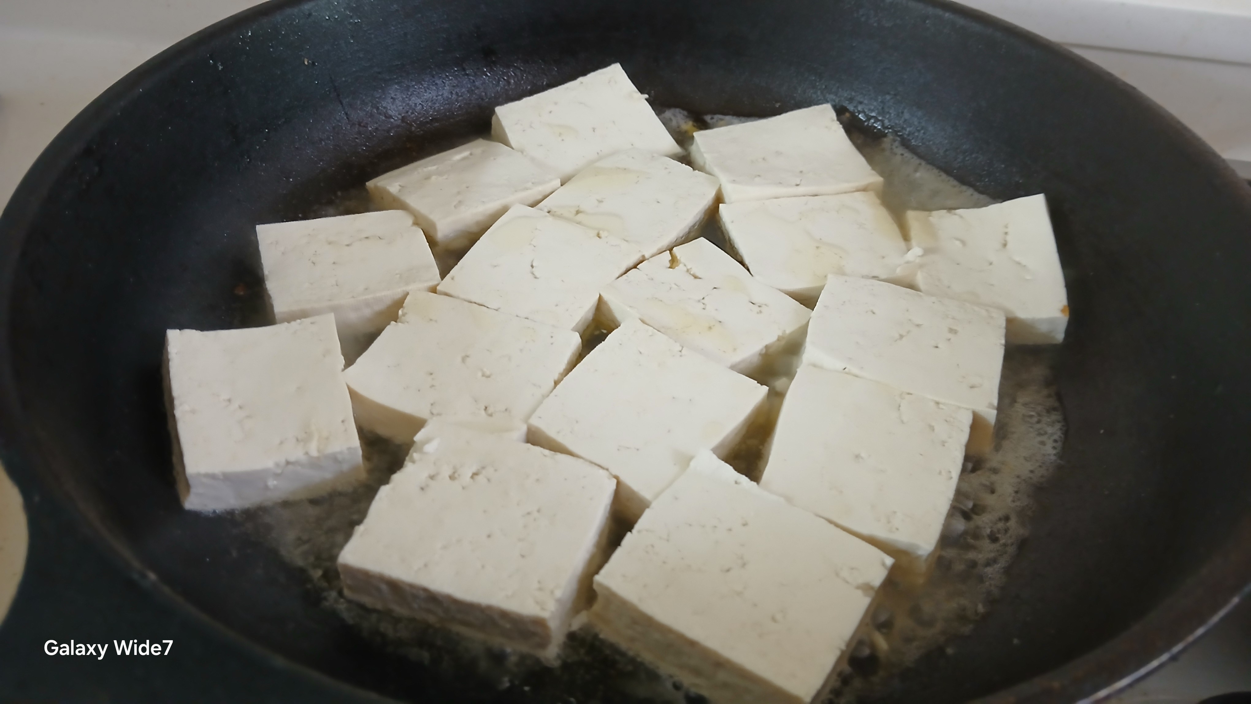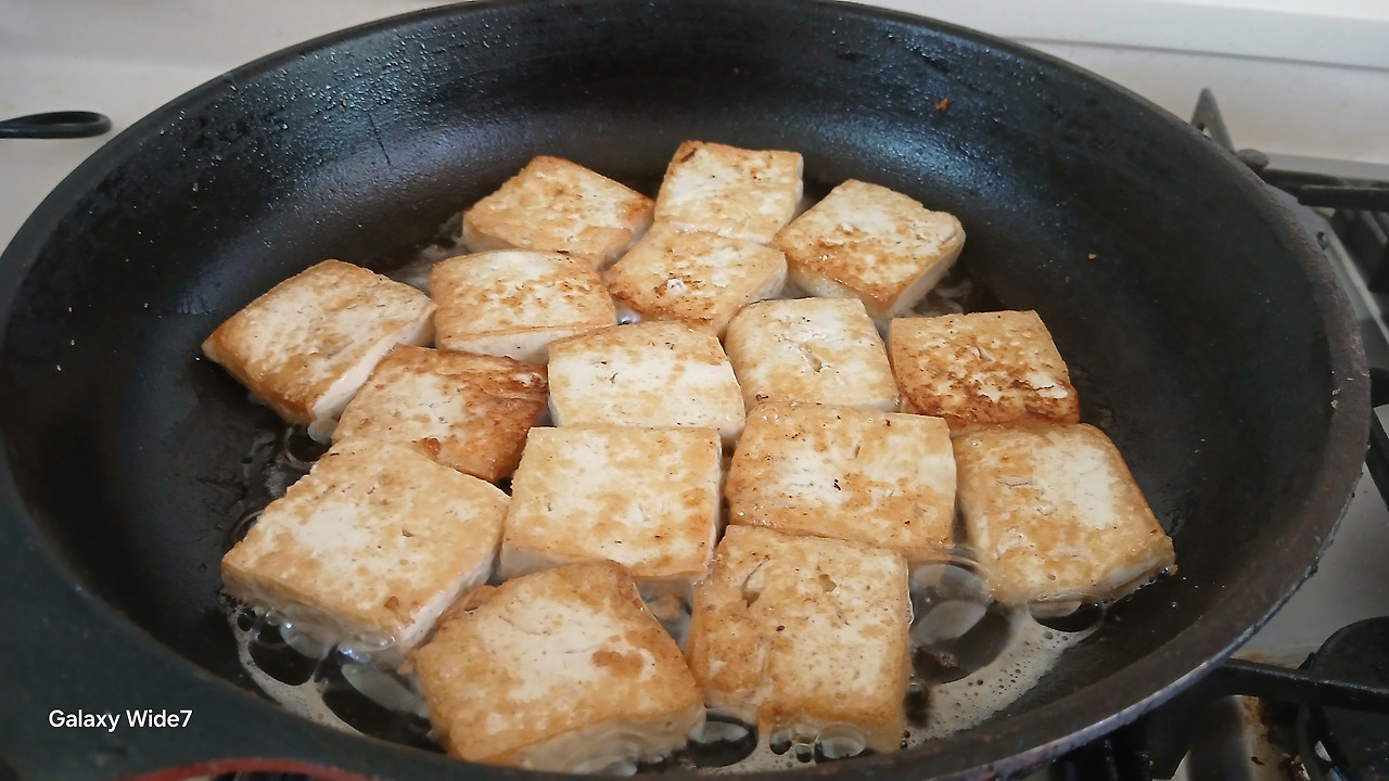 ▲육수에 풀어준 감자전분 두부에 부어 살짝 볶아 주시고
