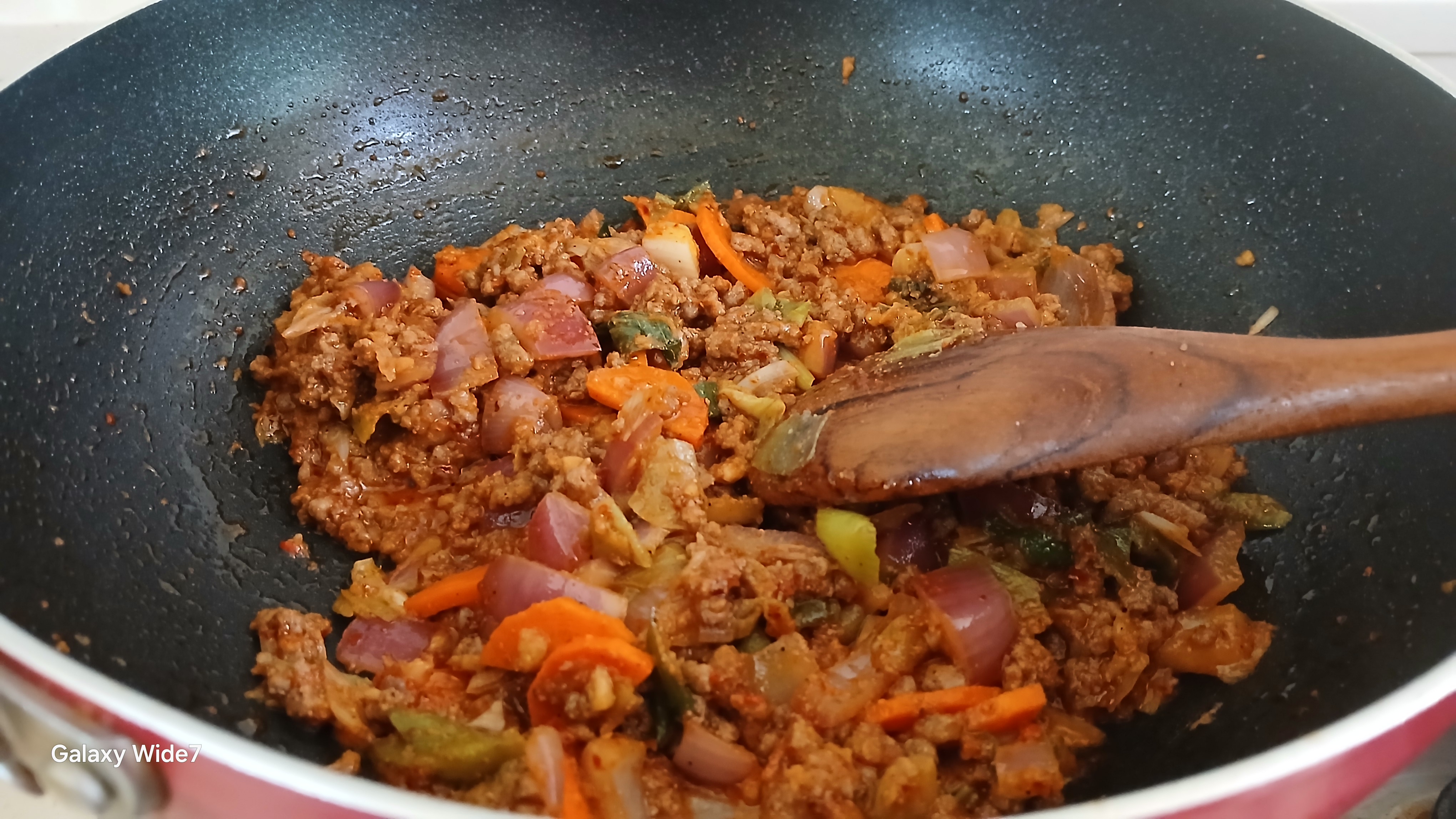 ▲이리저리 저어 맛있게 잘 볶아졌네요