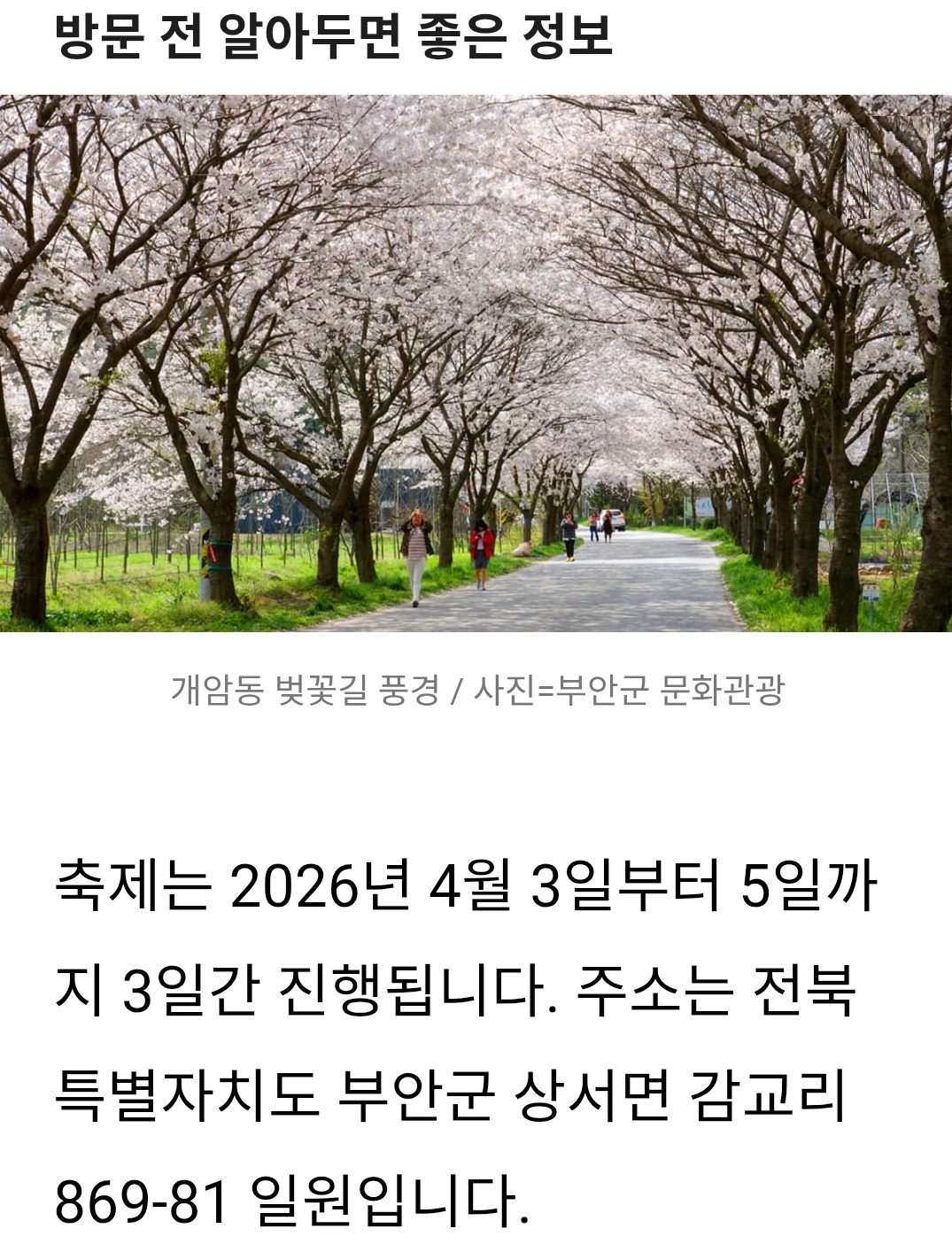 | 전북 고창 벗꽃 축제 (0) | 2026.03.26 |